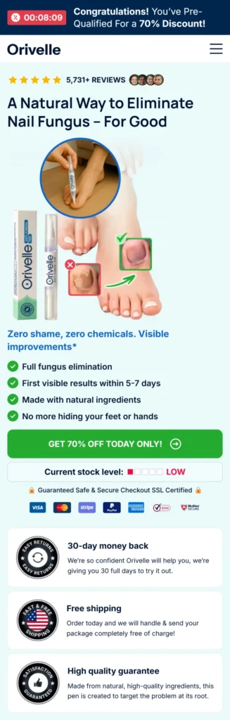 The Orivelle official promotion includes a massive 70% discount on all orders placed today. We include Free Shipping to any address within the United Kingdom.
